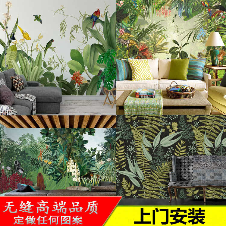 熱帶雨林森林3d壁紙綠色植物樹林大型壁畫咖啡廳客廳飯廳手繪壁紙